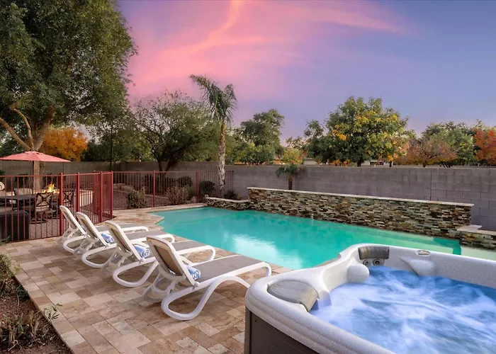 The multi-purpose State Farm Stadium is approximately 15 minutes' drive away. You can get to University of Phoenix Stadium in a few minutes by car. The nearest airport is Phoenix Goodyear, 20 km away from the villa.